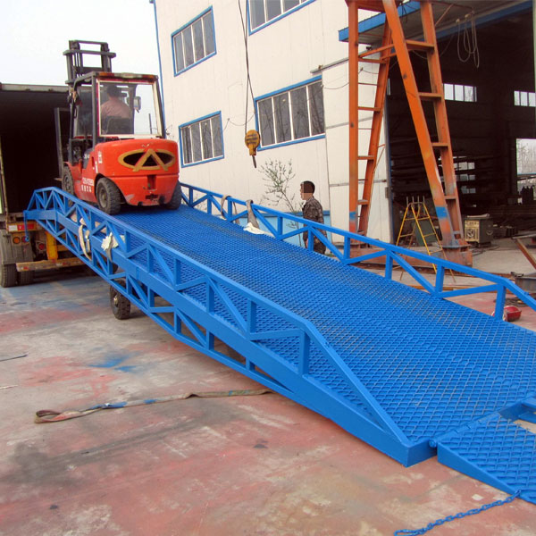 移動式(登車橋,液壓登車橋)是與叉車配合使用的貨物裝卸專用輔助設(shè)備。有了它,叉車能直接從地面駛?cè)肫囓?廂內(nèi)部進行批量裝缷作業(yè)。產(chǎn)品采用人工液壓動力,不需接動力電源。只需單人操作,即可實現(xiàn)貨物的安全快速裝卸。它可使您減少大量勞力,成倍提高裝卸作業(yè)效率,加快物料流通速度,獲取更大經(jīng)濟效益。